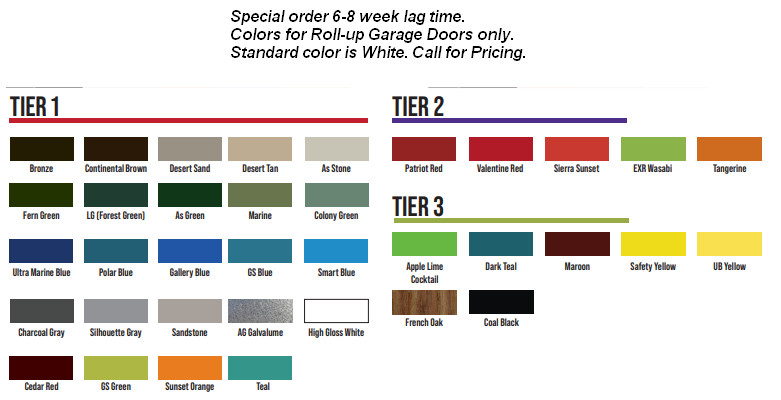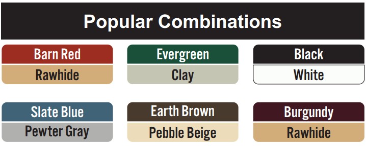 ☆Color chart Popular Color Combinations Roll Up Doors Speciality Colors Options, Windows, Doors, Roof Pitch, Fiberglass Insulation-Metal Buildings Door & Window Placement Template